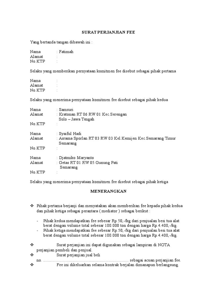 7 contoh surat penawaran harga barang kerjasama dan jasa. surat perjanjian komitmen fee yang bertanda tangan di bawah ini: 5 surat perjanjian bisnis yang startup di awal perjalanan. Doc surat perjanjian komitmen fee atep herdiana academia edu. Download surat perjanjian komitmen fee comments. Nah, untuk mengesahkan kesepakatan itu biasanya diperlukan sebuah surat perjanjian fee yang dibuat diatas materai dan memiliki kekuatan hukum. contoh surat perjanjian perkongsian perniagaan pdf free download. Sisurat contoh surat pernyataan komitmen fee komisi imbalan 2018 surat tulisan membaca. contoh surat perjanjian kontrak kerja yang baik dan format. Berikut informasi sepenuhnya tentang contoh surat perjanjian komitmen fee mediator. Format contoh surat komitmen fee jual beli tanah yang baik dan benar 2019. Download surat perjanjian komitmen fee format 1200 x 630 pixel. contoh surat perjanjian fee jual beli tanah surat perjanjian jasa perantara jual beli komitmen pemberian komisi fee atas jasa perantara jual beli tanah dan bangunan pada hari ini rabu tanggal 30 bulan januari tahun 2019 telah terjadi kesepakatan bersama antara pihak pihak yang bertanda tangan di bawah ini.